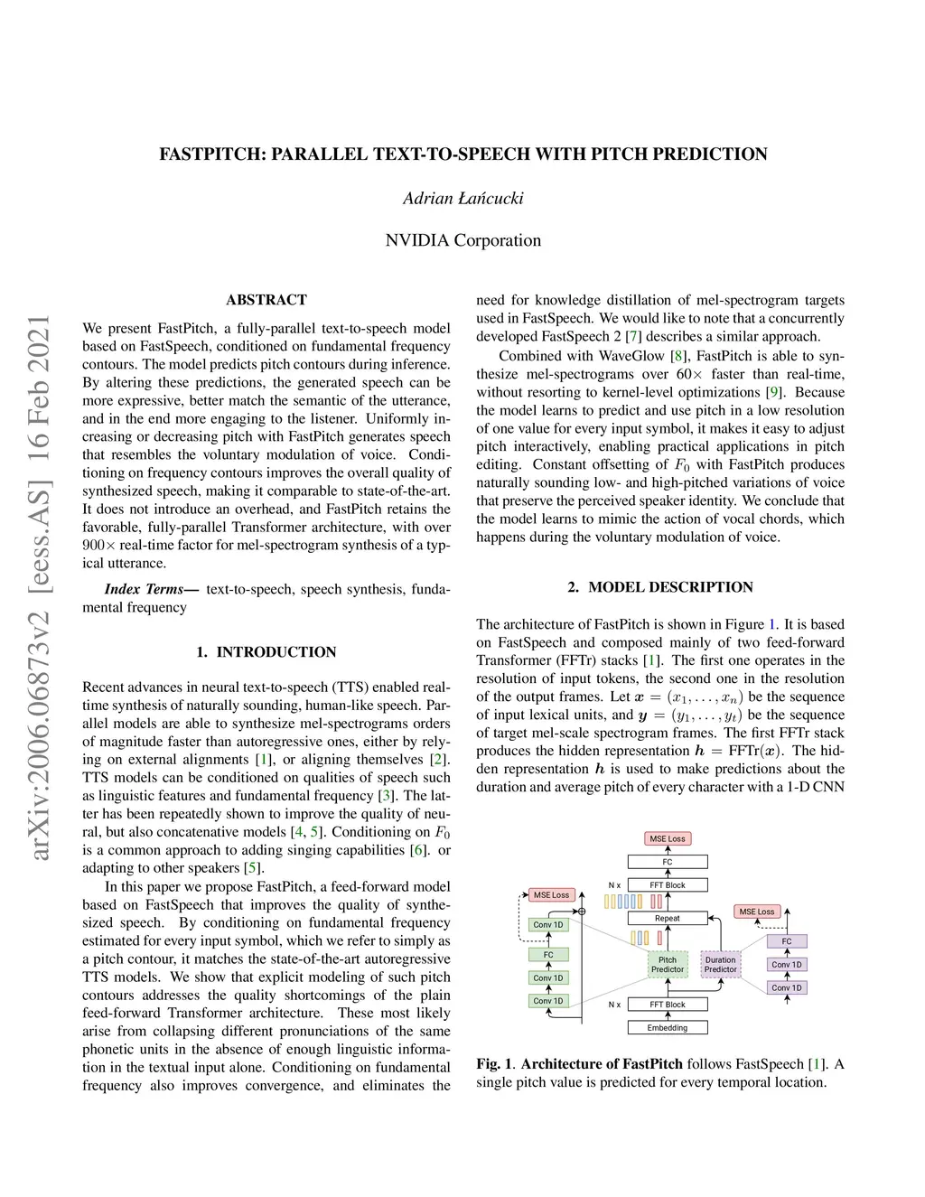 FastPitch: Parallel Text-to-speech with Pitch Prediction