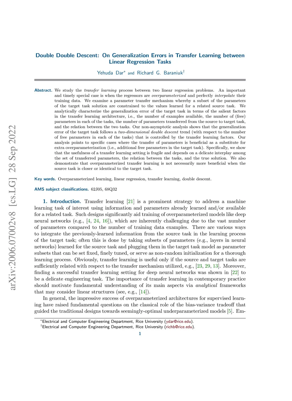 Double Double Descent: On Generalization Errors in Transfer Learning
