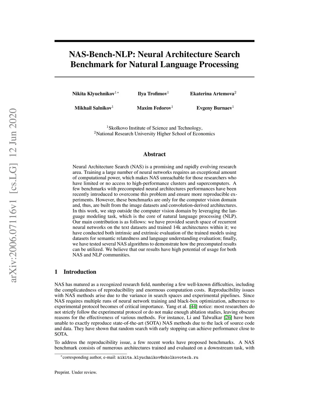NAS-Bench-NLP: Neural Architecture Search Benchmark for Natural Language