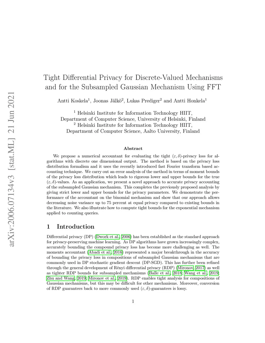 We propose a numerical accountant for evaluating the tight -privacy loss for algorithms with discrete one dimensional output. The method is based on the privacy loss distribution formalism and it uses the recently introduced fast Fourier transform based accounting technique. We carry out an error analysis of the method in terms of moment bounds of the privacy loss distribution which leads to rigorous lower and upper bounds for the true -values. As an application, we present a novel approach to accurate privacy accounting of the subsampled Gaussian mechanism. This completes the previously proposed analysis by giving strict lower and upper bounds for the privacy parameters. We demonstrate the performance of the accountant on the binomial mechanism and show that our approach allows decreasing noise variance up to 75 percent at equal privacy compared to existing bounds in the literature. We also illustrate how to compute tight bounds for the exponential mechanism applied to counting queries.