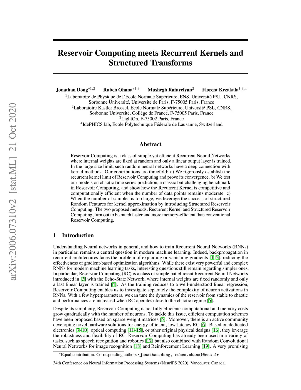 Reservoir Computing meets Recurrent Kernels and Structured Transforms