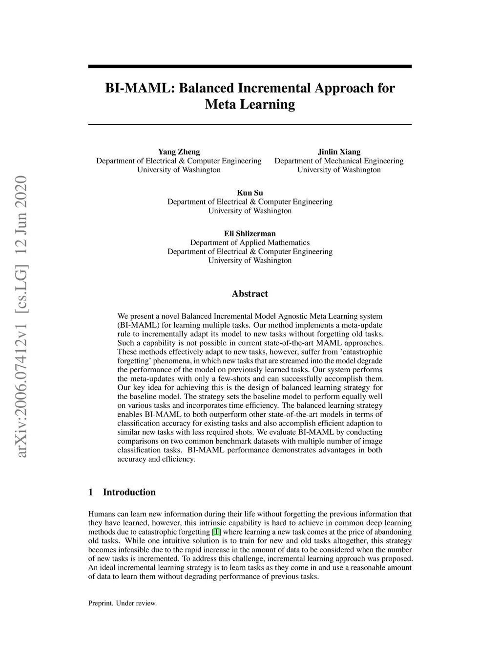 BI-MAML: Balanced Incremental Approach for Meta Learning