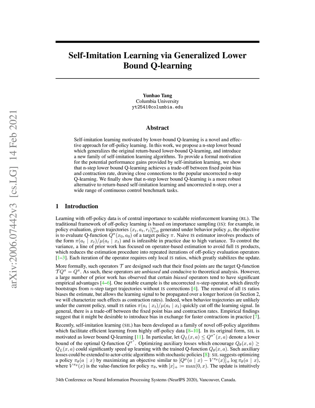 Self-imitation learning motivated by lower-bound Q-learning is a novel and effective approach for off-policy learning. In this work, we propose a n-step lower bound which generalizes the original return-based lower-bound Q-learning, and introduce a new family of self-imitation learning algorithms. To provide a formal motivation for the potential performance gains provided by self-imitation learning, we show that n-step lower bound Q-learning achieves a trade-off between fixed point bias and contraction rate, drawing close connections to the popular uncorrected n-step Q-learning. We finally show that n-step lower bound Q-learning is a more robust alternative to return-based self-imitation learning and uncorrected n-step, over a wide range of continuous control benchmark tasks.