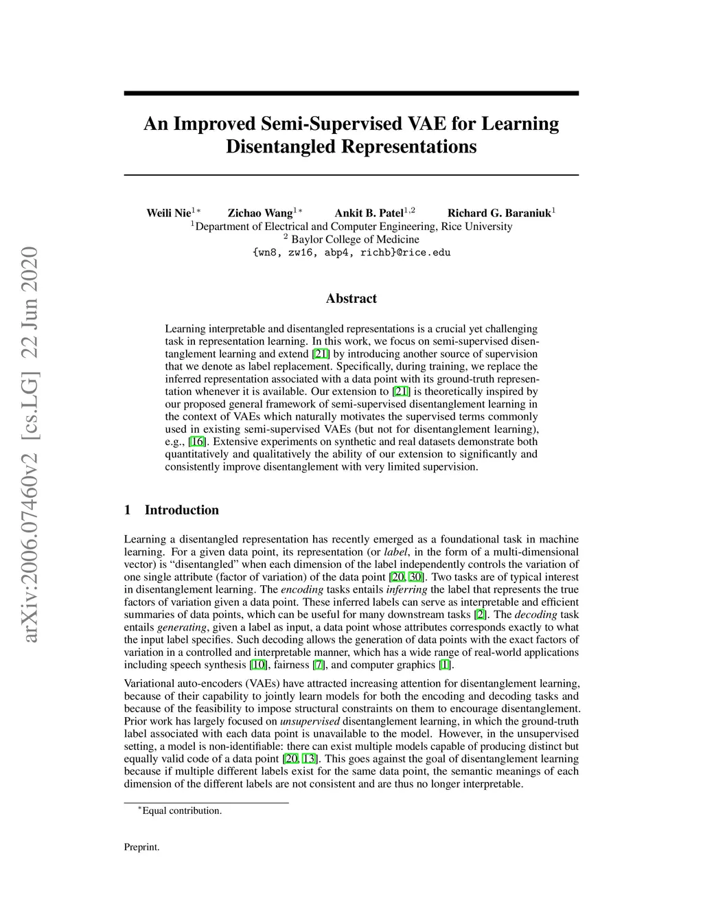An Improved Semi-Supervised VAE for Learning Disentangled