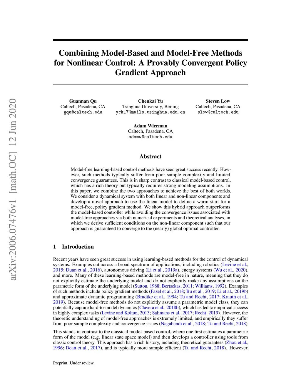 Combining Model-Based and Model-Free Methods for Nonlinear Control: A