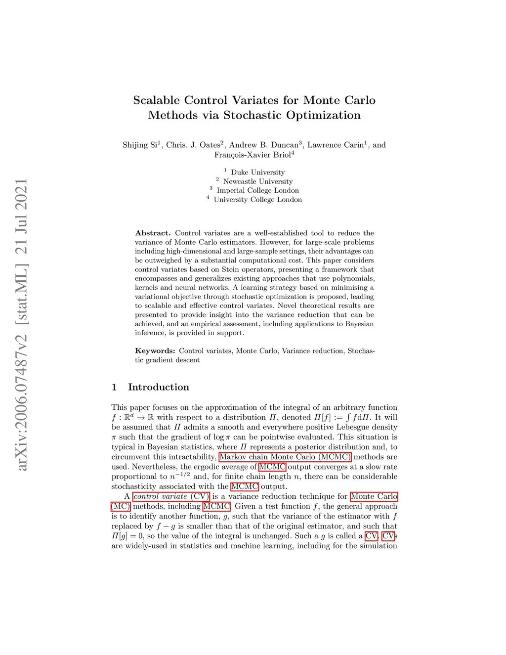 Scalable Control Variates for Monte Carlo Methods via Stochastic