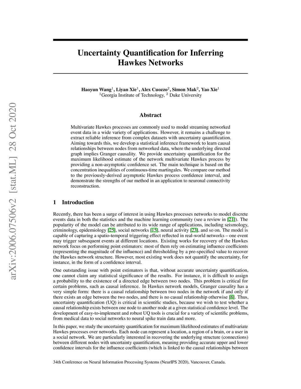 Uncertainty Quantification for Inferring Hawkes Networks
