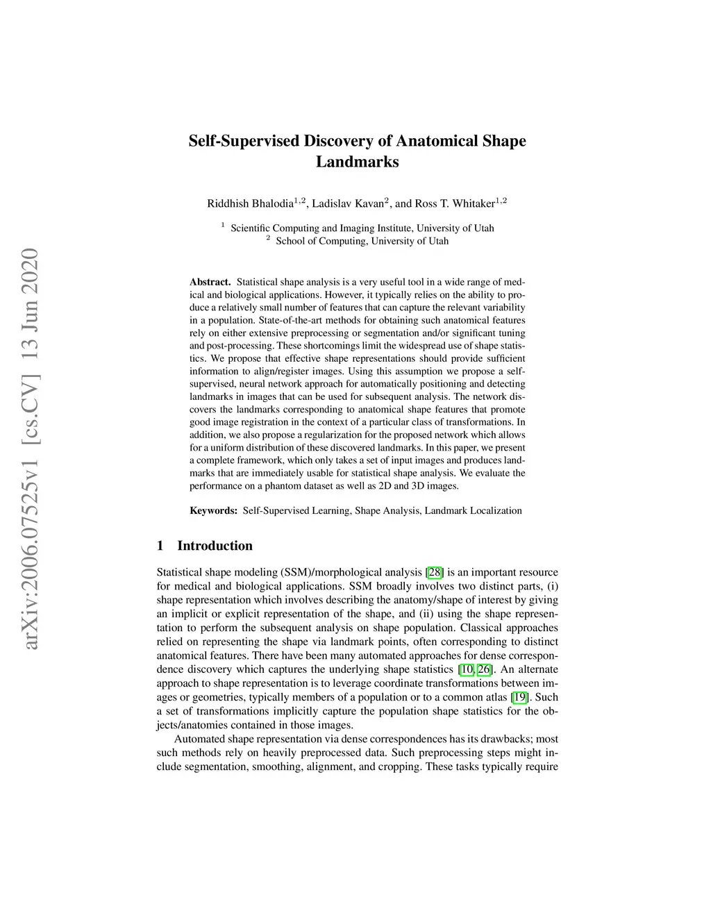 Self-Supervised Discovery of Anatomical Shape Landmarks