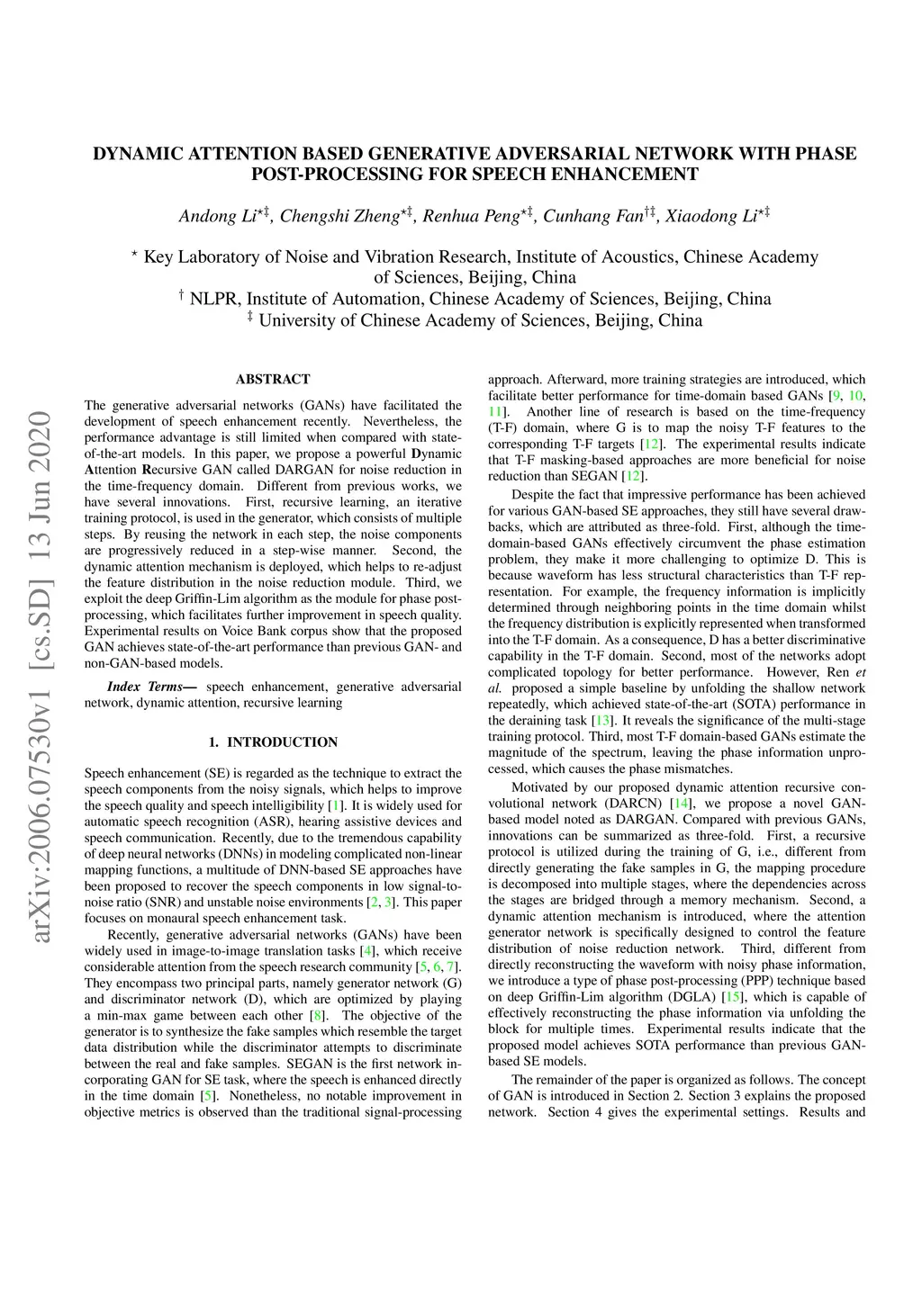 Dynamic Attention Based Generative Adversarial Network with Phase