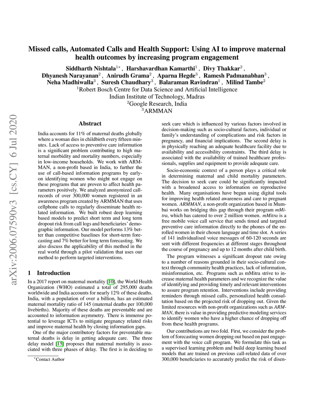Missed calls, Automated Calls and Health Support: Using AI to improve