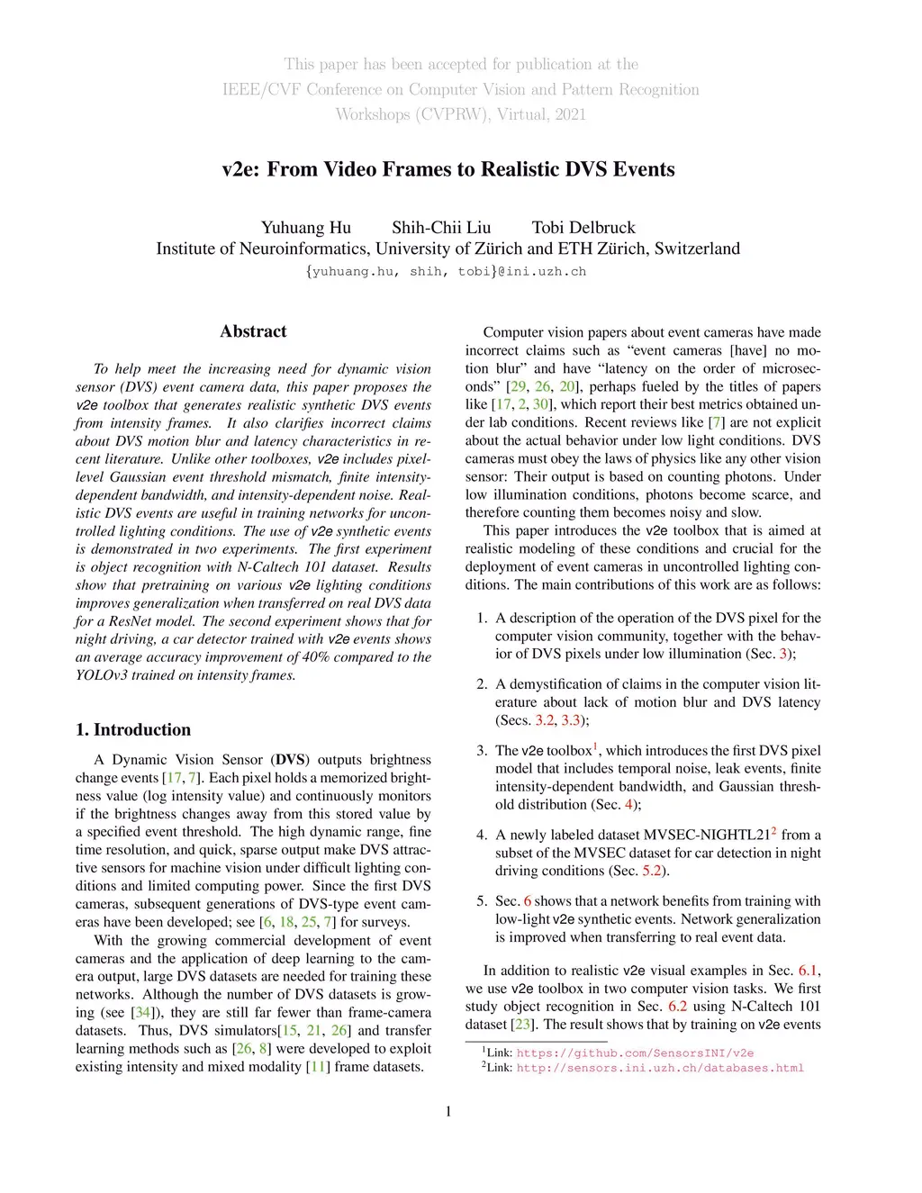To help meet the increasing need for dynamic vision sensor (DVS) event camera data, this paper proposes the v2e toolbox that generates realistic synthetic DVS events from intensity frames. It also clarifies incorrect claims about DVS motion blur and latency characteristics in recent literature. Unlike other toolboxes, v2e includes pixel-level Gaussian event threshold mismatch, finite intensity-dependent bandwidth, and intensity-dependent noise. Realistic DVS events are useful in training networks for uncontrolled lighting conditions. The use of v2e synthetic events is demonstrated in two experiments. The first experiment is object recognition with N-Caltech 101 dataset. Results show that pretraining on various v2e lighting conditions improves generalization when transferred on real DVS data for a ResNet model. The second experiment shows that for night driving, a car detector trained with v2e events shows an average accuracy improvement of 40% compared to the YOLOv3 trained on intensity frames.