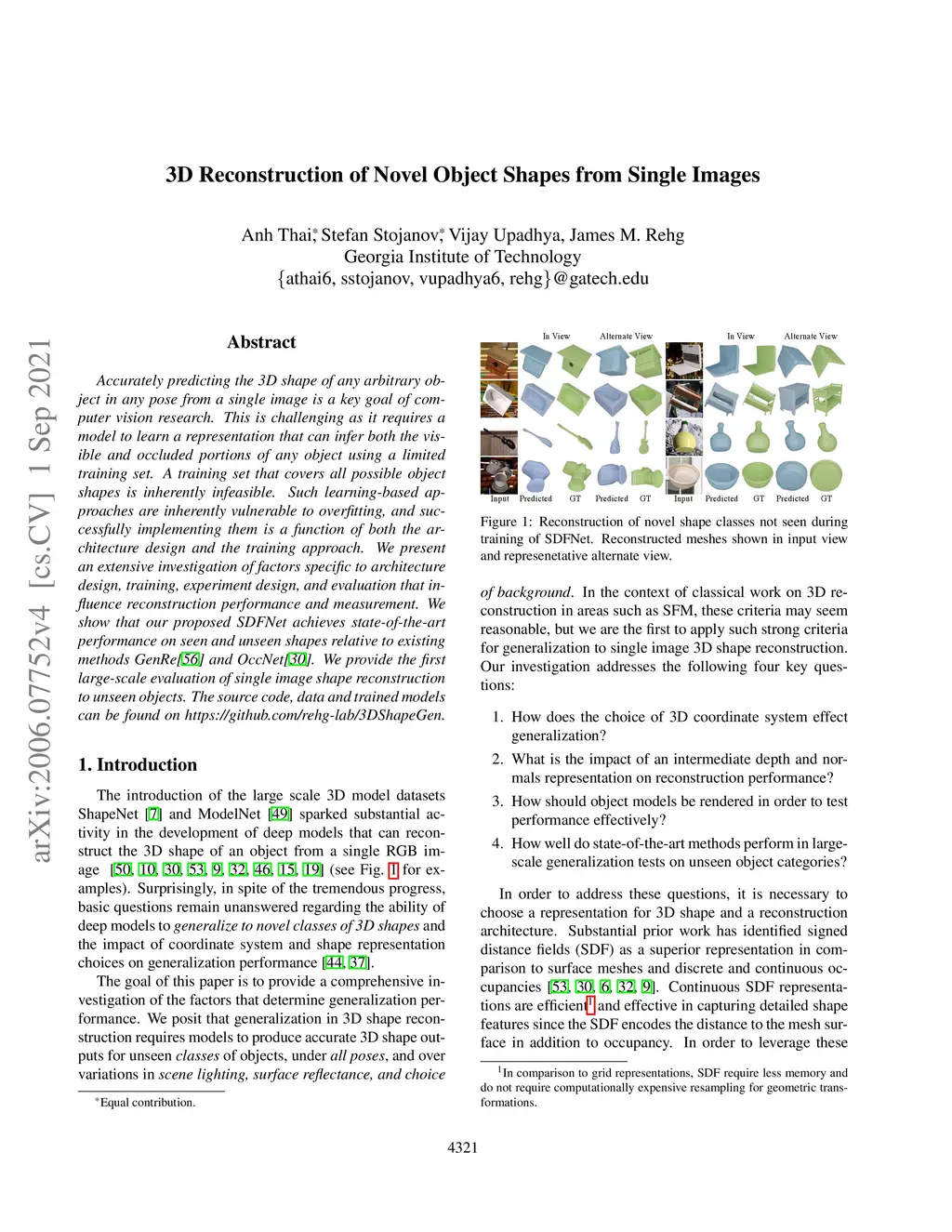 Accurately predicting the 3D shape of any arbitrary object in any pose from a single image is a key goal of computer vision research. This is challenging as it requires a model to learn a representation that can infer both the visible and occluded portions of any object using a limited training set. A training set that covers all possible object shapes is inherently infeasible. Such learning-based approaches are inherently vulnerable to overfitting, and successfully implementing them is a function of both the architecture design and the training approach. We present an extensive investigation of factors specific to architecture design, training, experiment design, and evaluation that influence reconstruction performance and measurement. We show that our proposed SDFNet achieves state-of-the-art performance on seen and unseen shapes relative to existing methods GenRe and OccNet. We provide the first large-scale evaluation of single image shape reconstruction to unseen objects. The source code, data and trained models can be found on https://github.com/rehg-lab/3DShapeGen.