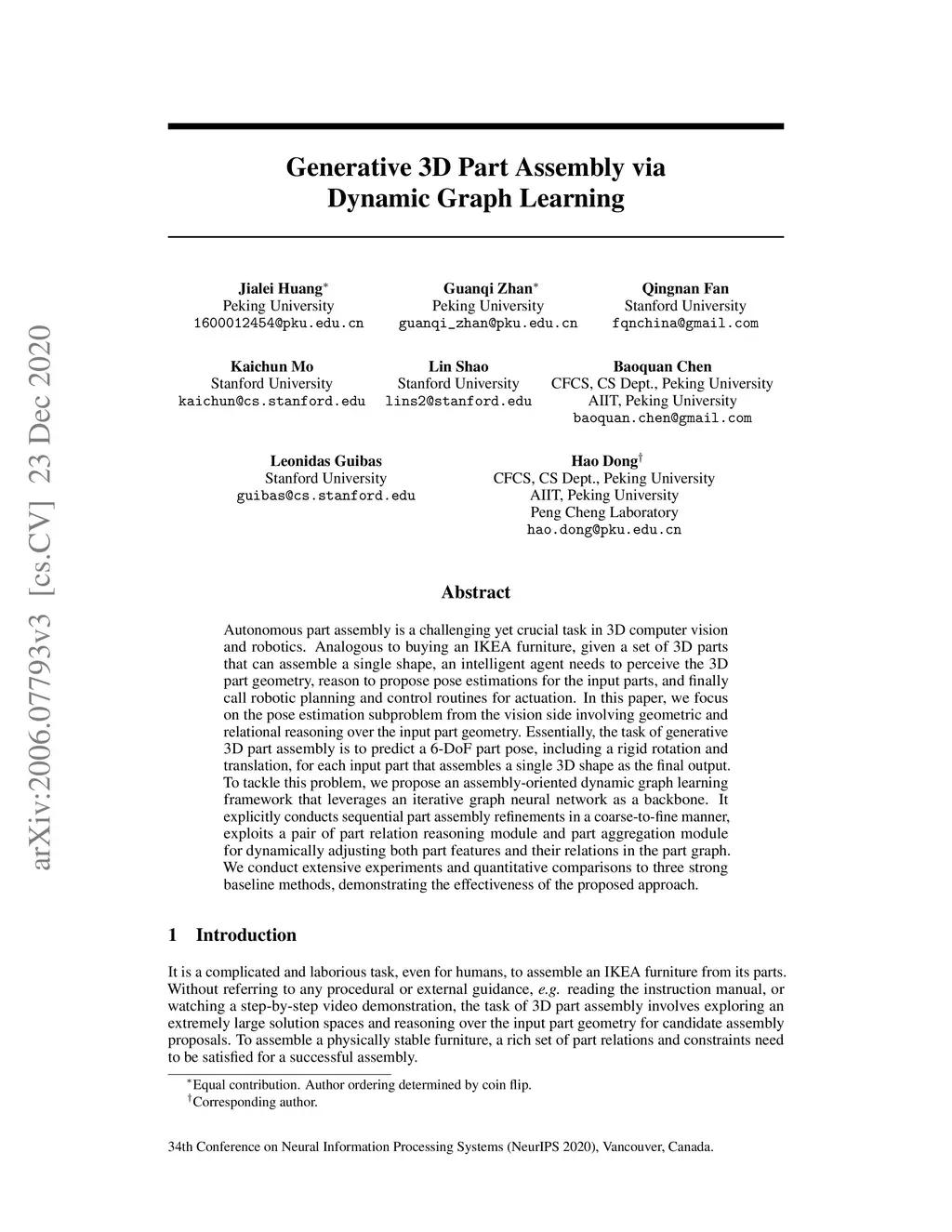 Generative 3D Part Assembly via Dynamic Graph Learning
