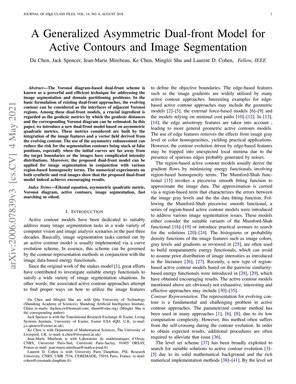 A Generalized Asymmetric Dual-front Model for Active Contours and Image