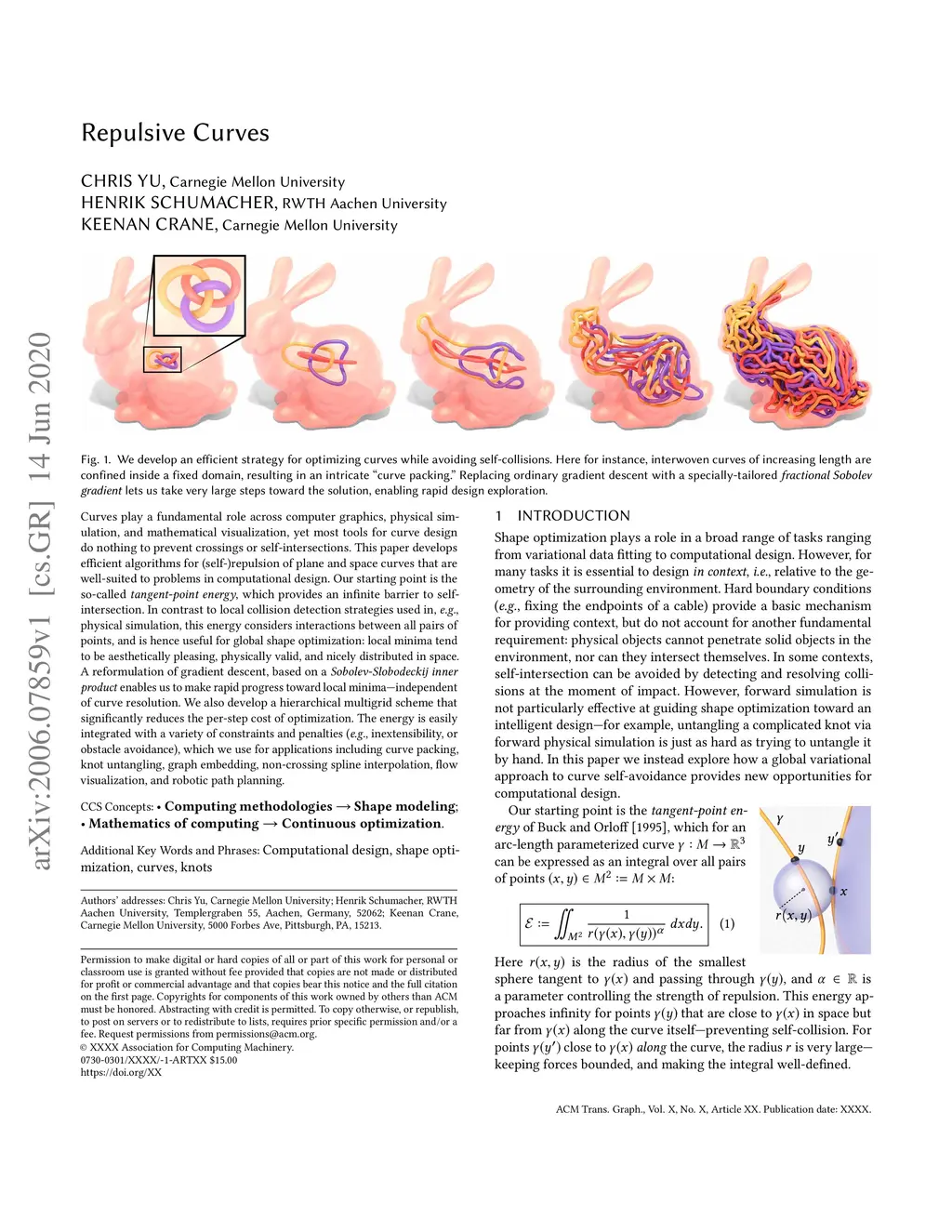 Curves play a fundamental role across computer graphics, physical simulation, and mathematical visualization, yet most tools for curve design do nothing to prevent crossings or self-intersections. This paper develops efficient algorithms for (self-)repulsion of plane and space curves that are well-suited to problems in computational design. Our starting point is the so-called tangent-point energy, which provides an infinite barrier to self-intersection. In contrast to local collision detection strategies used in, e.g., physical simulation, this energy considers interactions between all pairs of points, and is hence useful for global shape optimization: local minima tend to be aesthetically pleasing, physically valid, and nicely distributed in space. A reformulation of gradient descent, based on a Sobolev-Slobodeckij inner product enables us to make rapid progress toward local minima---independent of curve resolution. We also develop a hierarchical multigrid scheme that significantly reduces the per-step cost of optimization. The energy is easily integrated with a variety of constraints and penalties (e.g., inextensibility, or obstacle avoidance), which we use for applications including curve packing, knot untangling, graph embedding, non-crossing spline interpolation, flow visualization, and robotic path planning.
