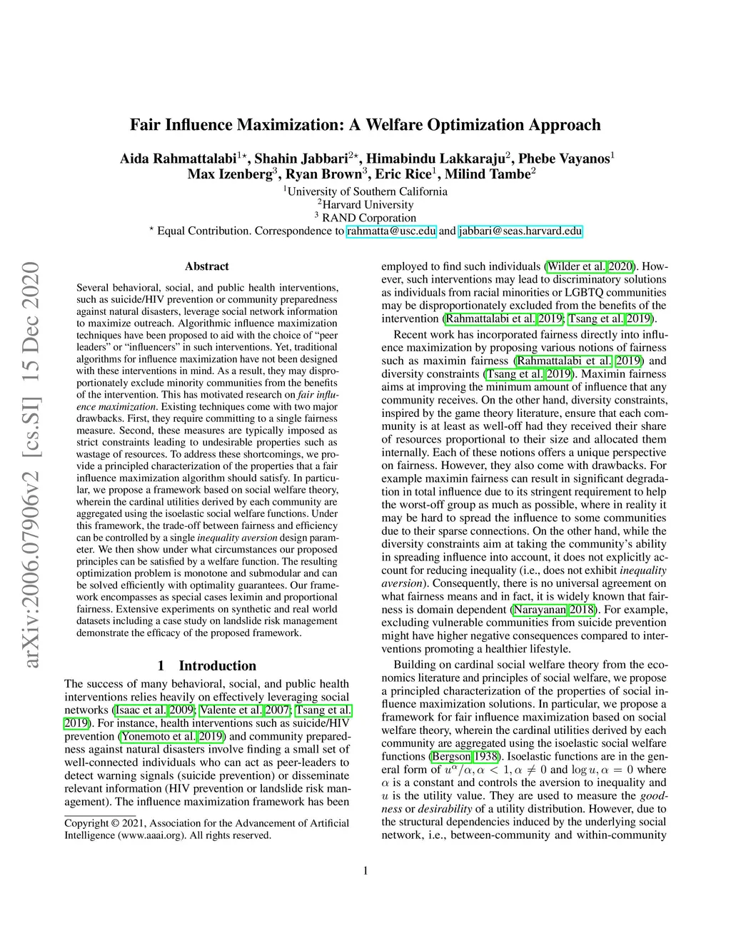 Several behavioral, social, and public health interventions, such as suicide/HIV prevention or community preparedness against natural disasters, leverage social network information to maximize outreach. Algorithmic influence maximization techniques have been proposed to aid with the choice of "peer leaders" or "influencers" in such interventions. Yet, traditional algorithms for influence maximization have not been designed with these interventions in mind. As a result, they may disproportionately exclude minority communities from the benefits of the intervention. This has motivated research on fair influence maximization. Existing techniques come with two major drawbacks. First, they require committing to a single fairness measure. Second, these measures are typically imposed as strict constraints leading to undesirable properties such as wastage of resources. To address these shortcomings, we provide a principled characterization of the properties that a fair influence maximization algorithm should satisfy. In particular, we propose a framework based on social welfare theory, wherein the cardinal utilities derived by each community are aggregated using the isoelastic social welfare functions. Under this framework, the trade-off between fairness and efficiency can be controlled by a single inequality aversion design parameter. We then show under what circumstances our proposed principles can be satisfied by a welfare function. The resulting optimization problem is monotone and submodular and can be solved efficiently with optimality guarantees. Our framework encompasses as special cases leximin and proportional fairness. Extensive experiments on synthetic and real world datasets including a case study on landslide risk management demonstrate the efficacy of the proposed framework.