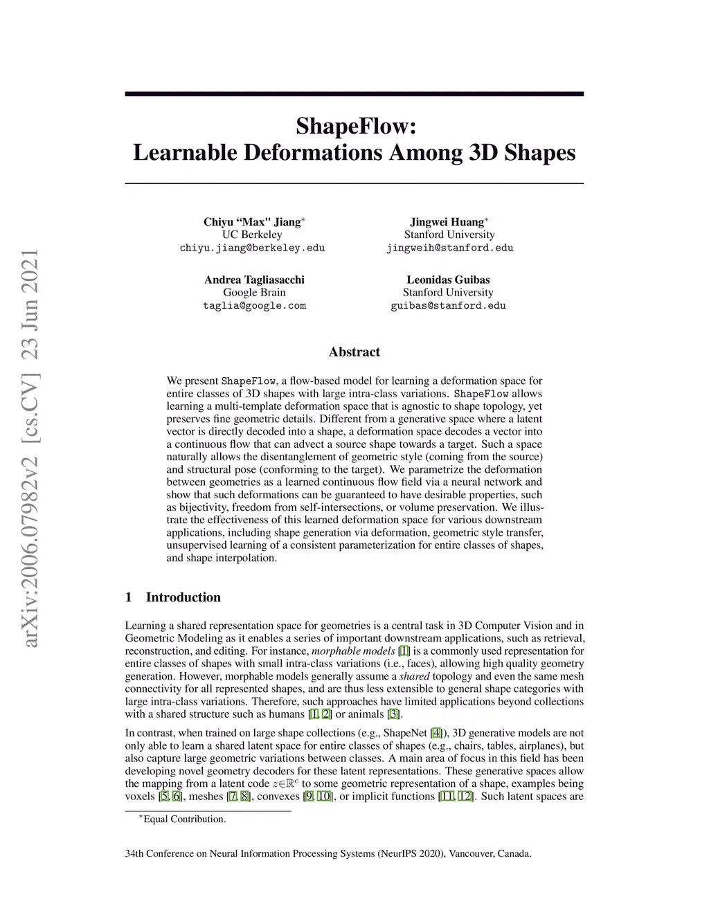 ShapeFlow: Learnable Deformations Among 3D Shapes