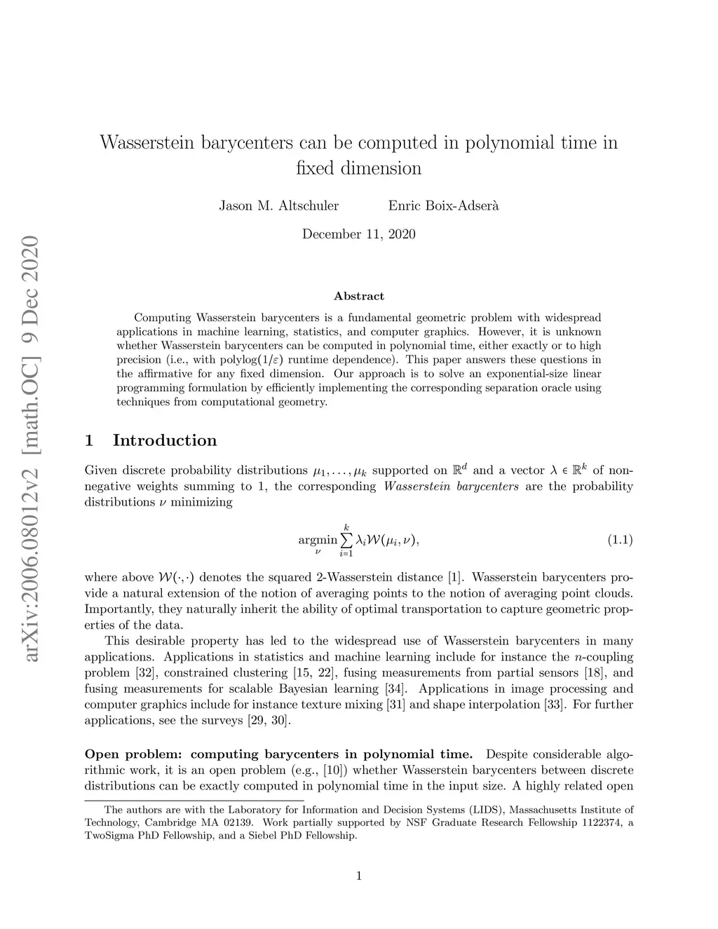 Wasserstein barycenters can be computed in polynomial time in fixed