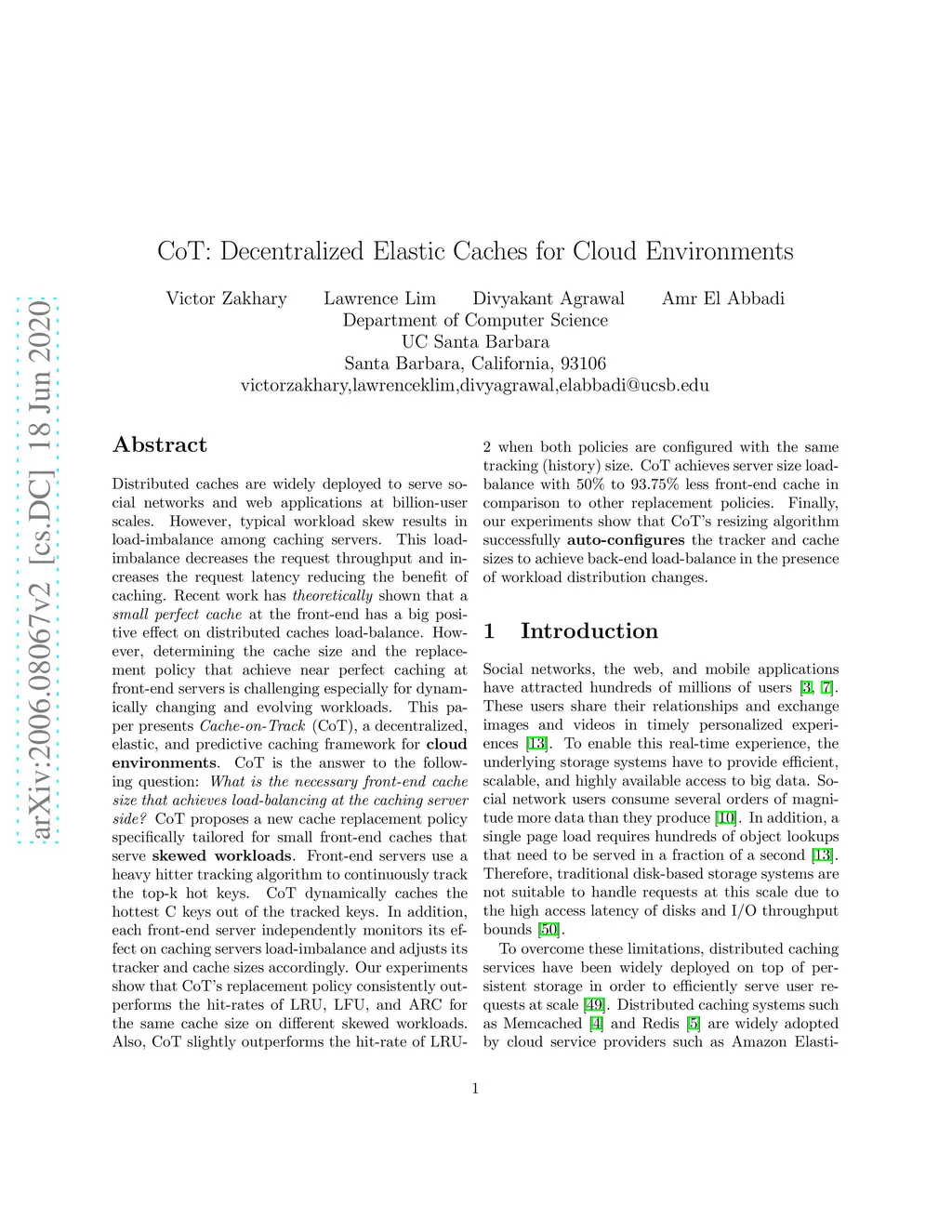 CoT: Decentralized Elastic Caches for Cloud Environments