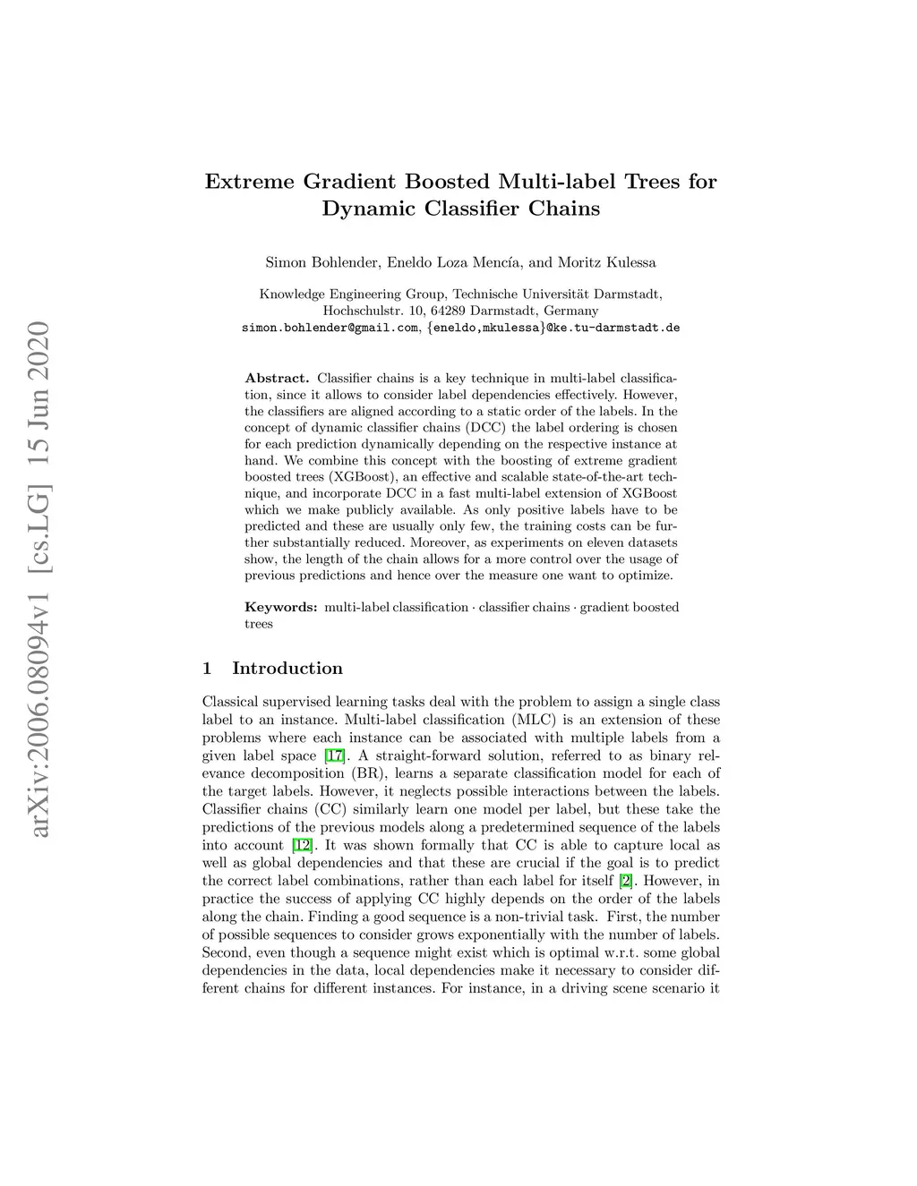 Classifier chains is a key technique in multi-label classification, since it allows to consider label dependencies effectively. However, the classifiers are aligned according to a static order of the labels. In the concept of dynamic classifier chains (DCC) the label ordering is chosen for each prediction dynamically depending on the respective instance at hand. We combine this concept with the boosting of extreme gradient boosted trees (XGBoost), an effective and scalable state-of-the-art technique, and incorporate DCC in a fast multi-label extension of XGBoost which we make publicly available. As only positive labels have to be predicted and these are usually only few, the training costs can be further substantially reduced. Moreover, as experiments on eleven datasets show, the length of the chain allows for a more control over the usage of previous predictions and hence over the measure one want to optimize.