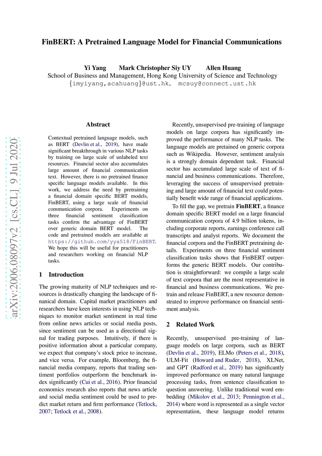 FinBERT: A Pretrained Language Model for Financial Communications
