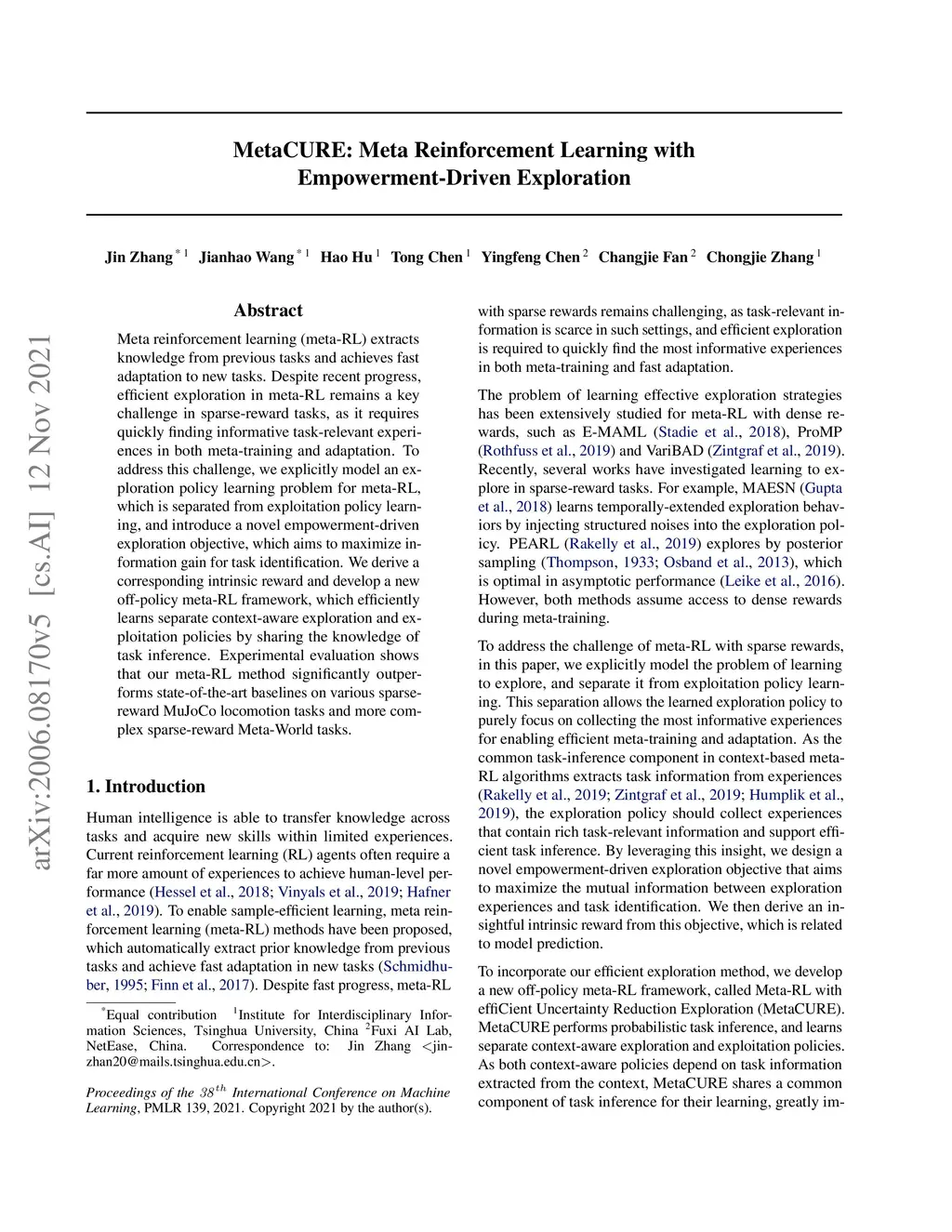 MetaCURE: Meta Reinforcement Learning with Empowerment-Driven