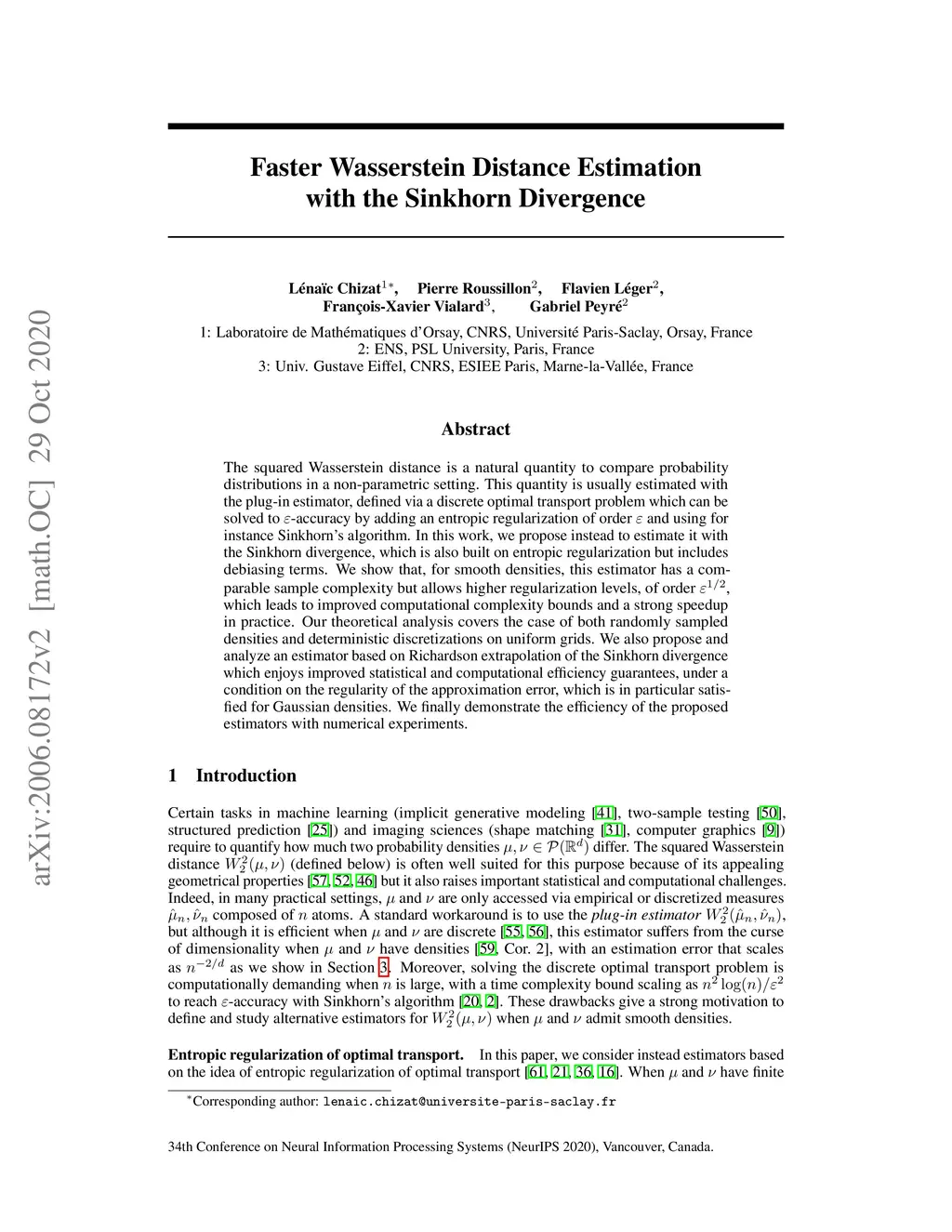 Faster Wasserstein Distance Estimation with the Sinkhorn Divergence