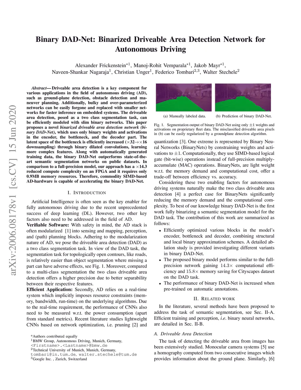 Binary DAD-Net: Binarized Driveable Area Detection Network for