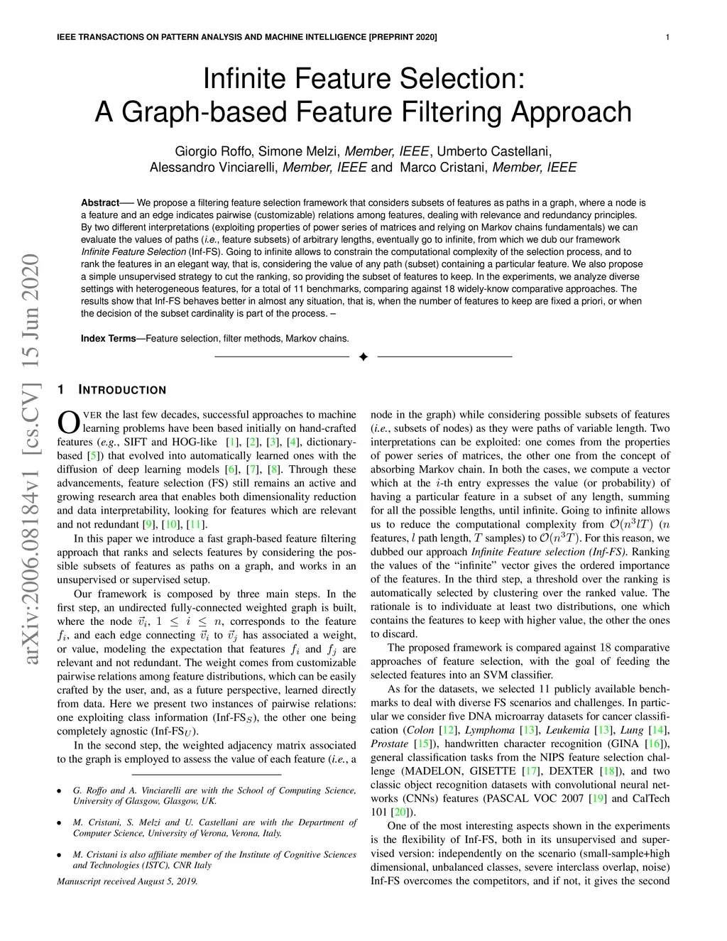 Infinite Feature Selection: A Graph-based Feature Filtering Approach