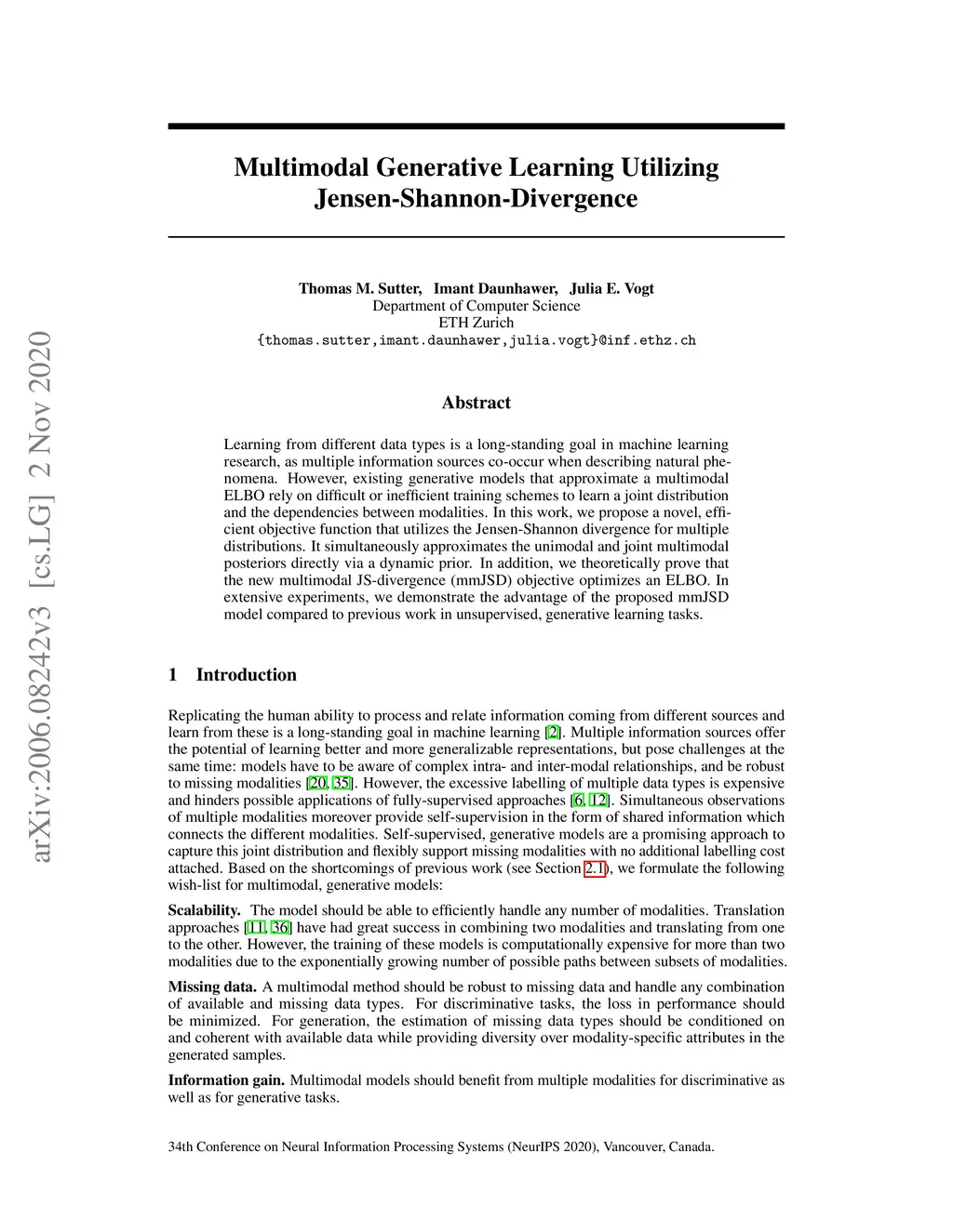 Multimodal Generative Learning Utilizing Jensen-Shannon-Divergence