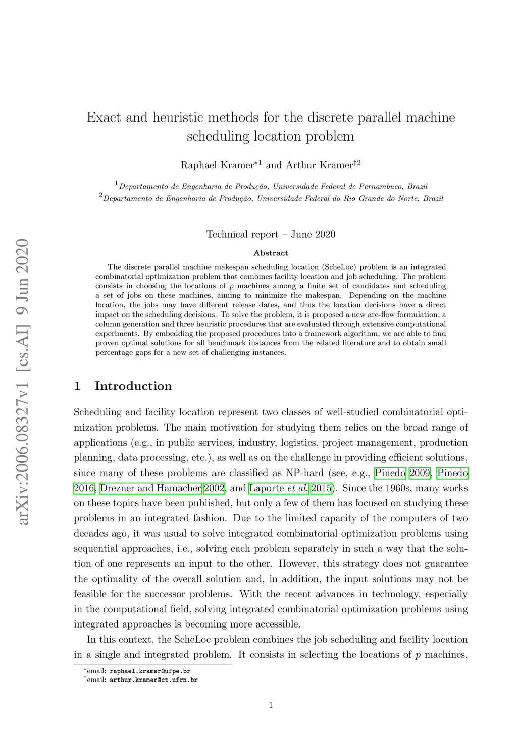 The discrete parallel machine makespan scheduling location (ScheLoc) problem is an integrated combinatorial optimization problem that combines facility location and job scheduling. The problem consists in choosing the locations of machines among a finite set of candidates and scheduling a set of jobs on these machines, aiming to minimize the makespan. Depending on the machine location, the jobs may have different release dates, and thus the location decisions have a direct impact on the scheduling decisions. To solve the problem, it is proposed a new arc-flow formulation, a column generation and three heuristic procedures that are evaluated through extensive computational experiments. By embedding the proposed procedures into a framework algorithm, we are able to find proven optimal solutions for all benchmark instances from the related literature and to obtain small percentage gaps for a new set of challenging instances.