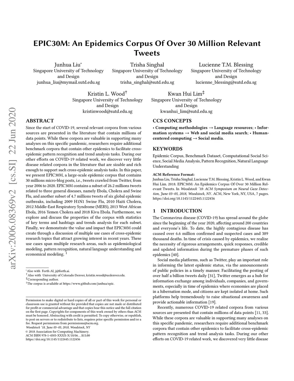 EPIC30M: An Epidemics Corpus Of Over 30 Million Relevant Tweets