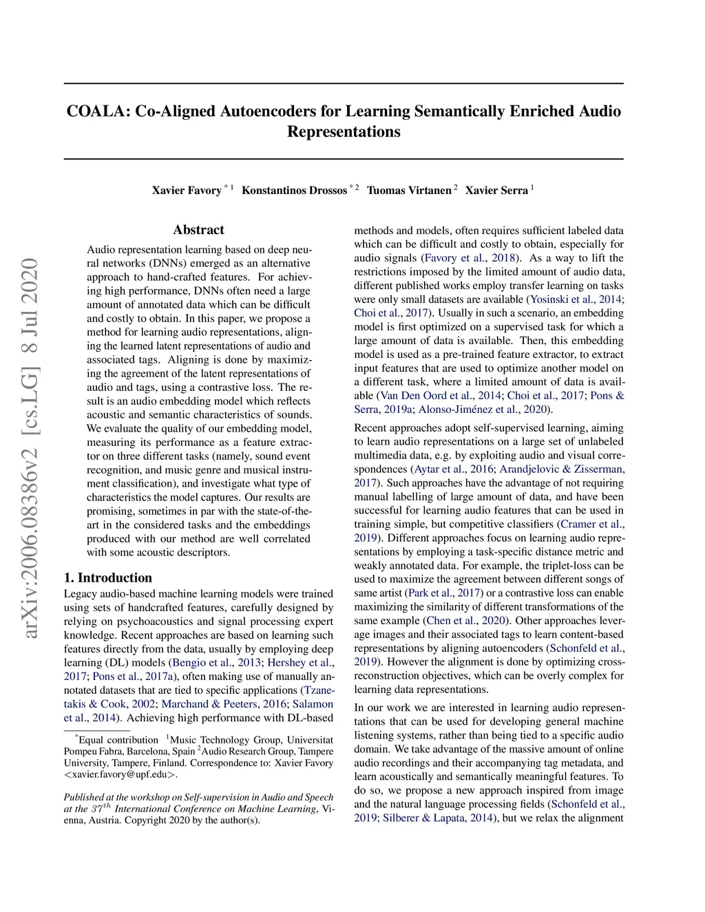 COALA: Co-Aligned Autoencoders for Learning Semantically Enriched Audio