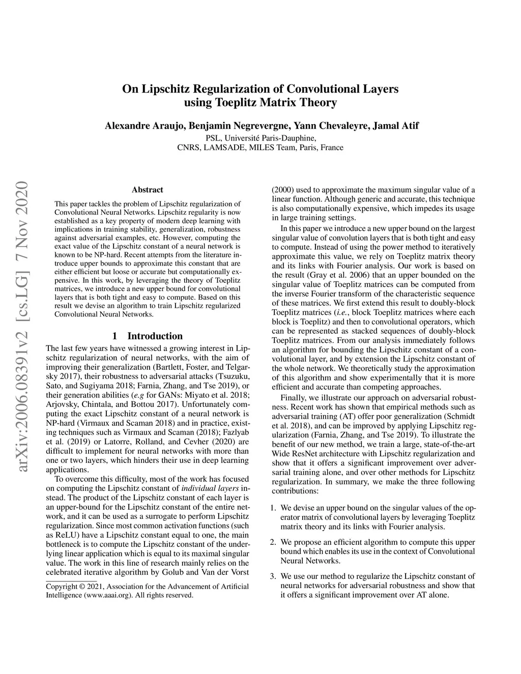 On Lipschitz Regularization of Convolutional Layers using Toeplitz