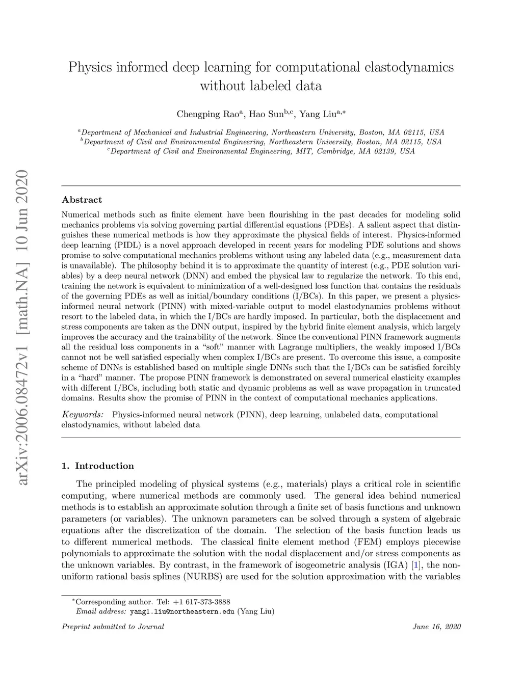 Physics informed deep learning for computational elastodynamics without