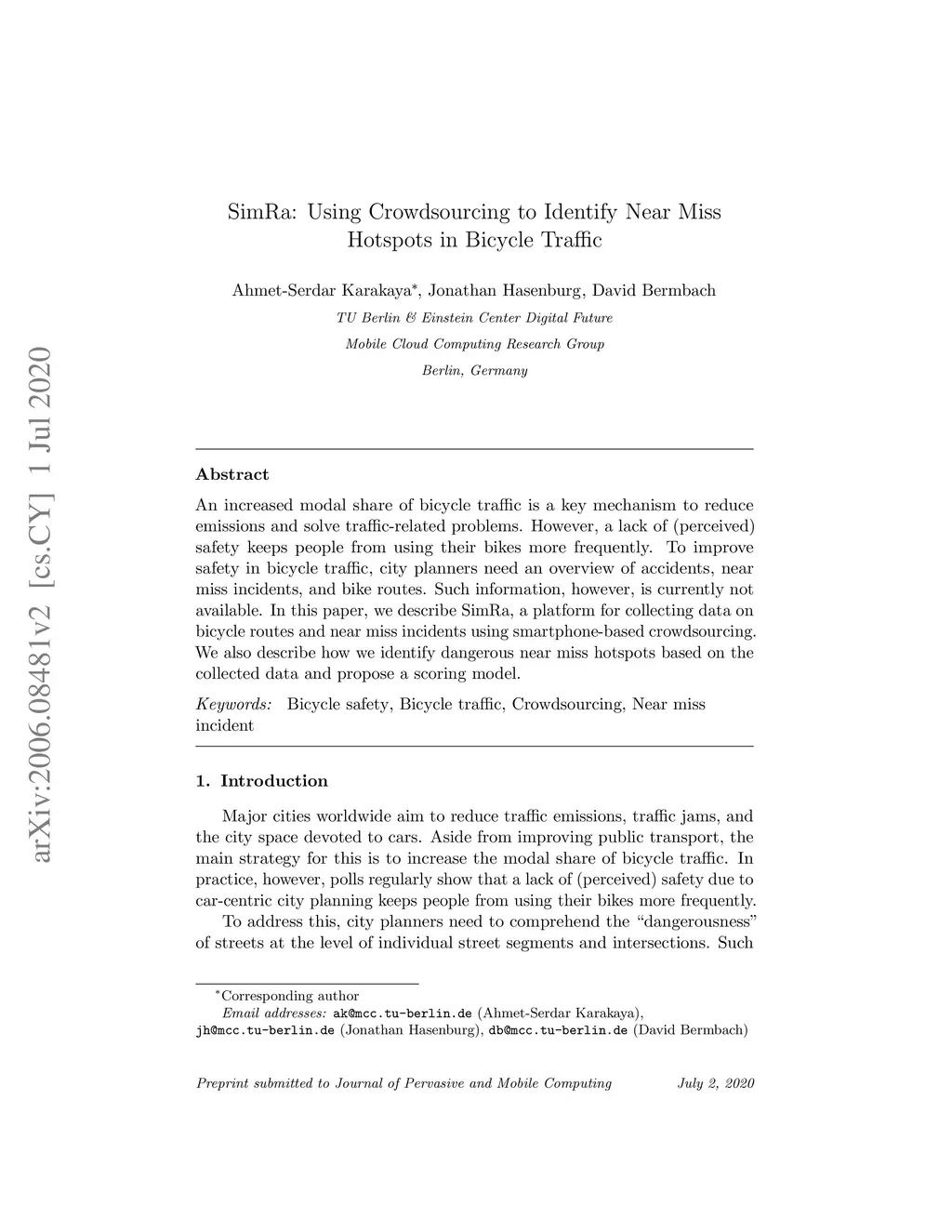 SimRa: Using Crowdsourcing to Identify Near Miss Hotspots in Bicycle