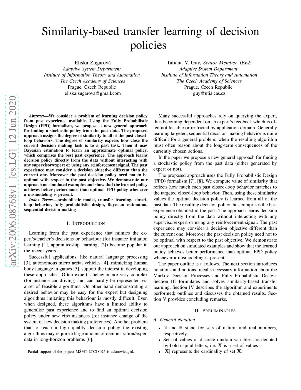 Similarity-based transfer learning of decision policies