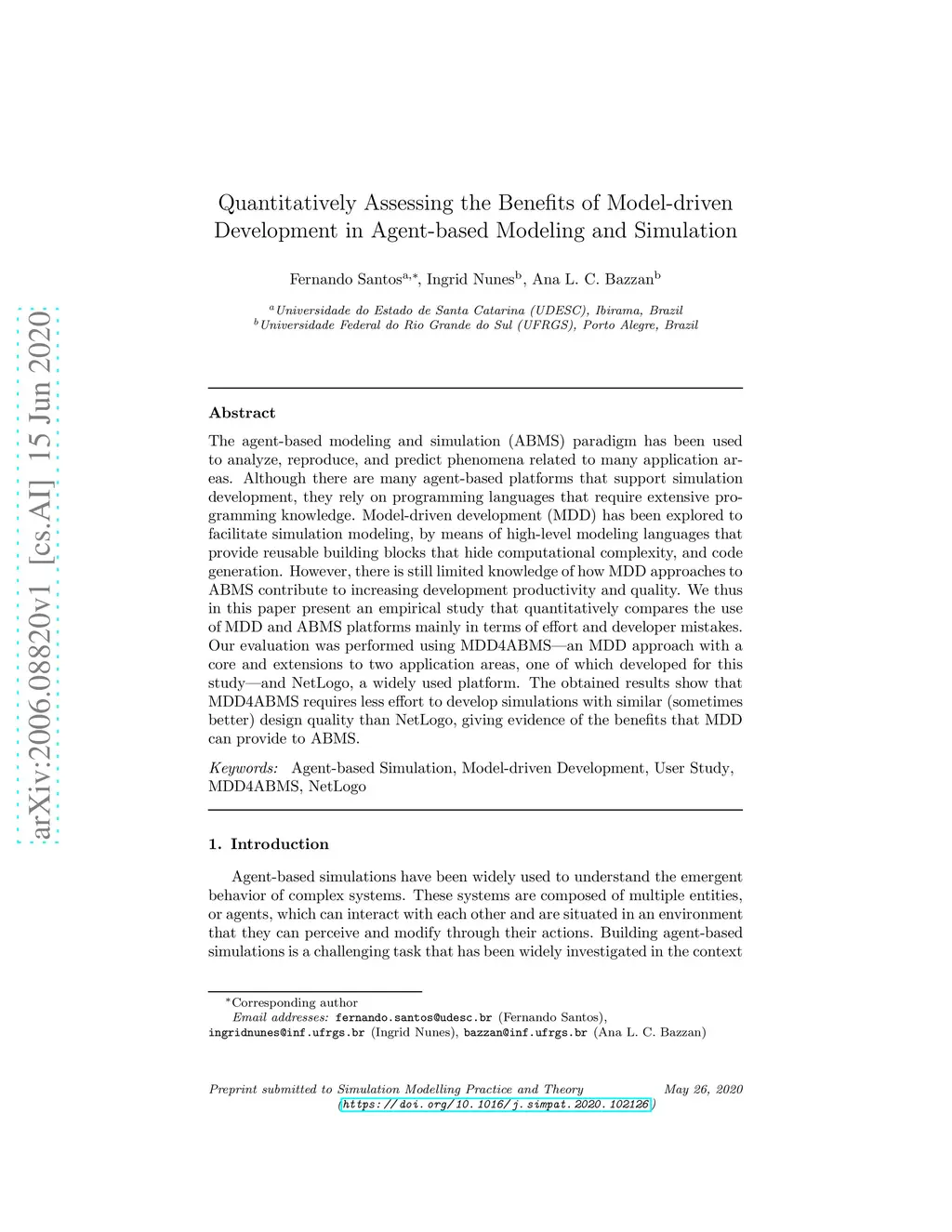 The agent-based modeling and simulation (ABMS) paradigm has been used to analyze, reproduce, and predict phenomena related to many application areas. Although there are many agent-based platforms that support simulation development, they rely on programming languages that require extensive programming knowledge. Model-driven development (MDD) has been explored to facilitate simulation modeling, by means of high-level modeling languages that provide reusable building blocks that hide computational complexity, and code generation. However, there is still limited knowledge of how MDD approaches to ABMS contribute to increasing development productivity and quality. We thus in this paper present an empirical study that quantitatively compares the use of MDD and ABMS platforms mainly in terms of effort and developer mistakes. Our evaluation was performed using MDD4ABMS-an MDD approach with a core and extensions to two application areas, one of which developed for this study-and NetLogo, a widely used platform. The obtained results show that MDD4ABMS requires less effort to develop simulations with similar (sometimes better) design quality than NetLogo, giving evidence of the benefits that MDD can provide to ABMS.