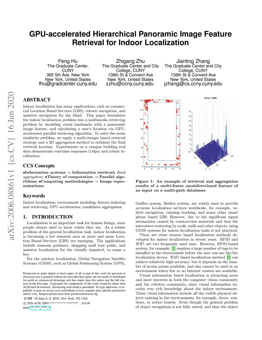 Indoor localization has many applications, such as commercial Location Based Services (LBS), robotic navigation, and assistive navigation for the blind. This paper formulates the indoor localization problem into a multimedia retrieving problem by modeling visual landmarks with a panoramic image feature, and calculating a user's location via GPU- accelerated parallel retrieving algorithm. To solve the scene similarity problem, we apply a multi-images based retrieval strategy and a 2D aggregation method to estimate the final retrieval location. Experiments on a campus building real data demonstrate real-time responses (14fps) and robust localization.