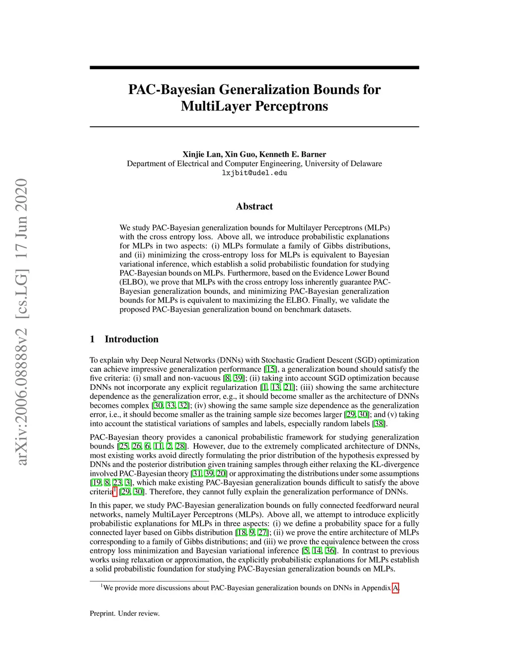 PAC-Bayesian Generalization Bounds for MultiLayer Perceptrons