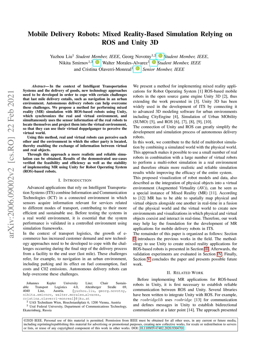Mobile Delivery Robots: Mixed Reality-Based Simulation Relying on ROS