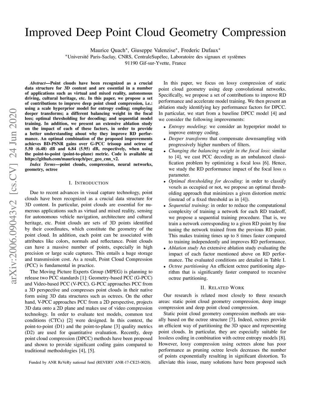 Point clouds have been recognized as a crucial data structure for 3D content and are essential in a number of applications such as virtual and mixed reality, autonomous driving, cultural heritage, etc. In this paper, we propose a set of contributions to improve deep point cloud compression, i.e.: using a scale hyperprior model for entropy coding; employing deeper transforms; a different balancing weight in the focal loss; optimal thresholding for decoding; and sequential model training. In addition, we present an extensive ablation study on the impact of each of these factors, in order to provide a better understanding about why they improve RD performance. An optimal combination of the proposed improvements achieves BD-PSNR gains over G-PCC trisoup and octree of 5.50 (6.48) dB and 6.84 (5.95) dB, respectively, when using the point-to-point (point-to-plane) metric. Code is available at https://github.com/mauriceqch/pcc_geo_cnn_v2 .