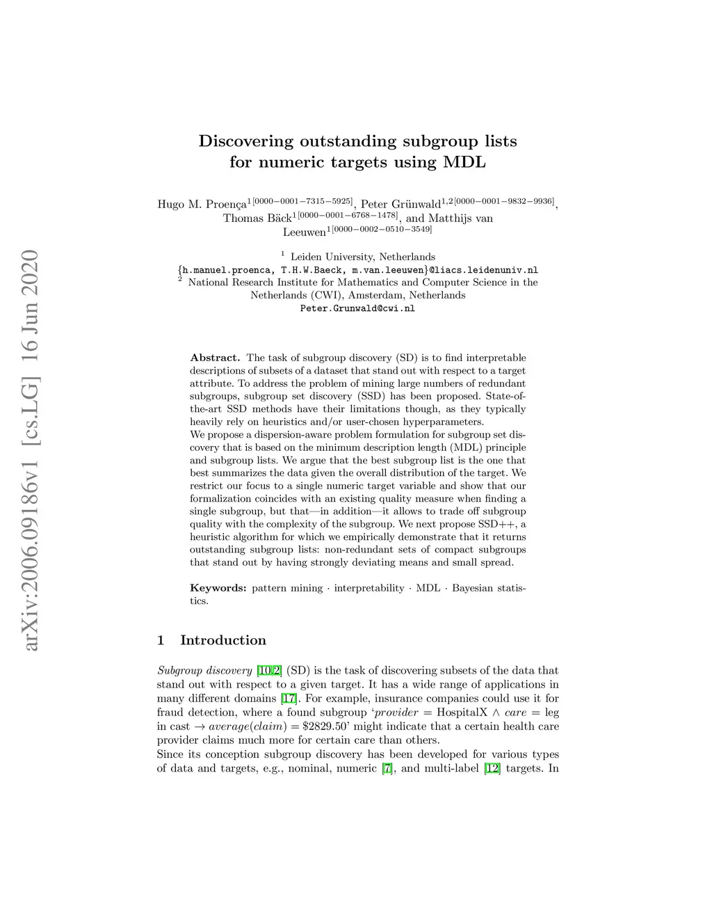 Discovering outstanding subgroup lists for numeric targets using MDL