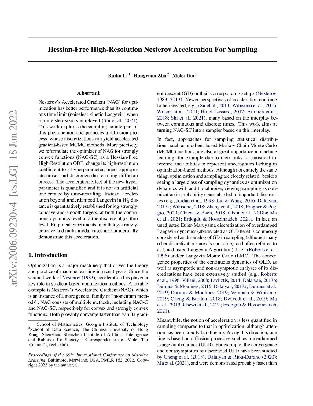 Nesterov's Accelerated Gradient (NAG) for optimization has better performance than its continuous time limit (noiseless kinetic Langevin) when a finite step-size is employed \citep{shi2021understanding}. This work explores the sampling counterpart of this phenonemon and proposes a diffusion process, whose discretizations can yield accelerated gradient-based MCMC methods. More precisely, we reformulate the optimizer of NAG for strongly convex functions (NAG-SC) as a Hessian-Free High-Resolution ODE, change its high-resolution coefficient to a hyperparameter, inject appropriate noise, and discretize the resulting diffusion process. The acceleration effect of the new hyperparameter is quantified and it is not an artificial one created by time-rescaling. Instead, acceleration beyond underdamped Langevin in distance is quantitatively established for log-strongly-concave-and-smooth targets, at both the continuous dynamics level and the discrete algorithm level. Empirical experiments in both log-strongly-concave and multi-modal cases also numerically demonstrate this acceleration.