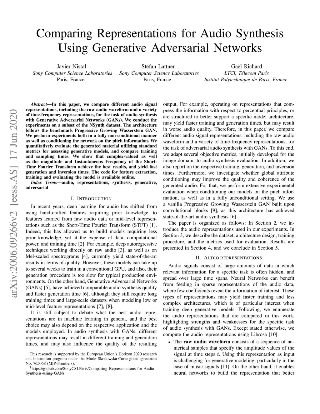 Comparing Representations for Audio Synthesis Using Generative