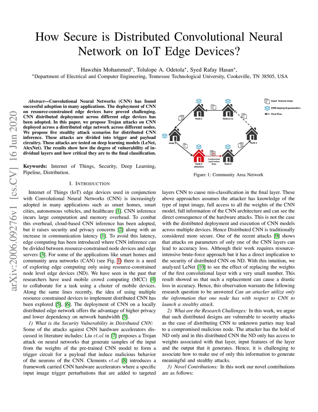 How Secure is Distributed Convolutional Neural Network on IoT Edge