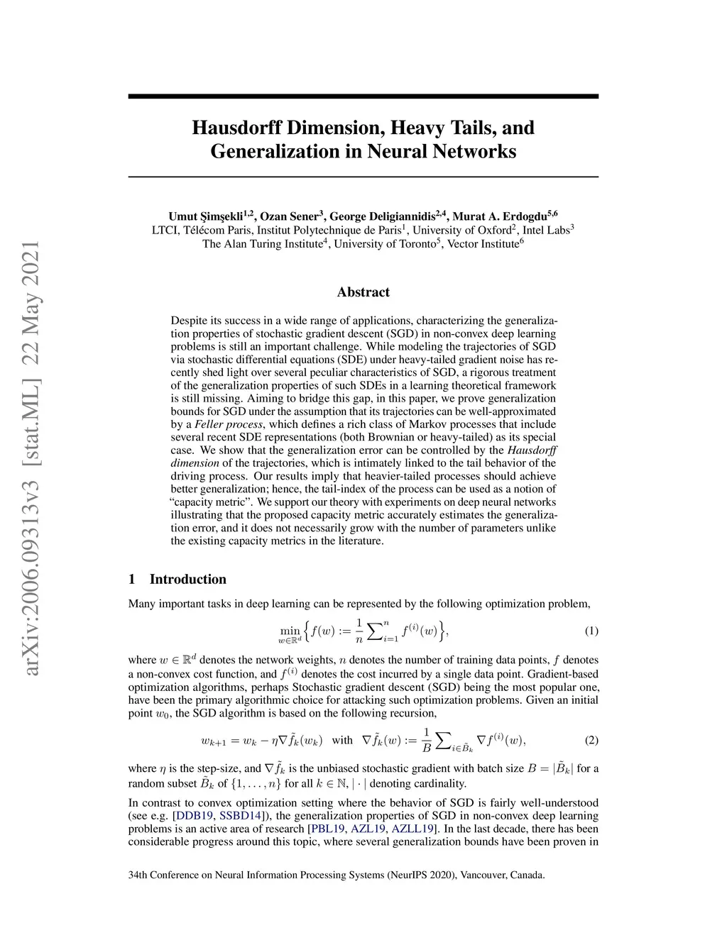 Hausdorff Dimension, Heavy Tails, and Generalization in Neural Networks