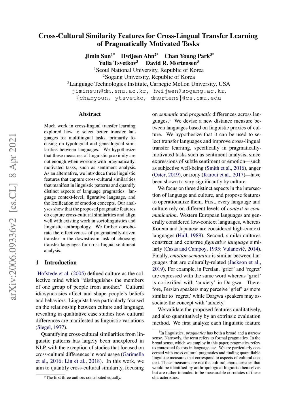Cross-Cultural Similarity Features for Cross-Lingual Transfer Learning