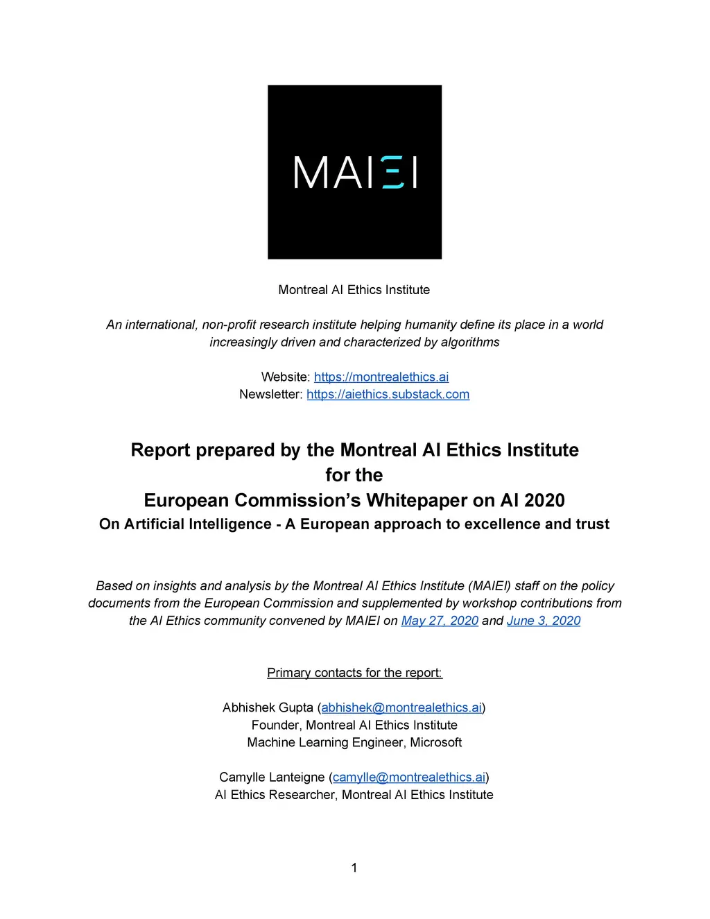 Response by the Montreal AI Ethics Institute to the European