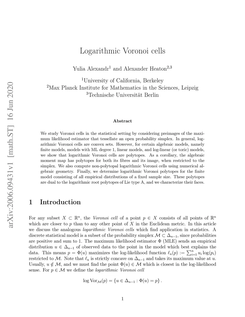 We study Voronoi cells in the statistical setting by considering preimages of the maximum likelihood estimator that tessellate an open probability simplex. In general, logarithmic Voronoi cells are convex sets. However, for certain algebraic models, namely finite models, models with ML degree 1, linear models, and log-linear (or toric) models, we show that logarithmic Voronoi cells are polytopes. As a corollary, the algebraic moment map has polytopes for both its fibres and its image, when restricted to the simplex. We also compute non-polytopal logarithmic Voronoi cells using numerical algebraic geometry. Finally, we determine logarithmic Voronoi polytopes for the finite model consisting of all empirical distributions of a fixed sample size. These polytopes are dual to the logarithmic root polytopes of Lie type A, and we characterize their faces.